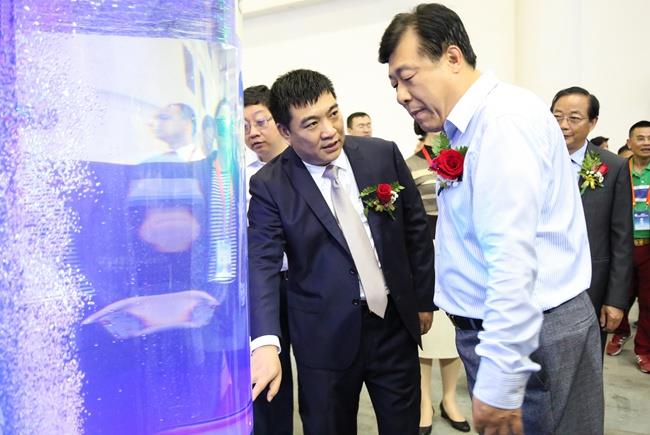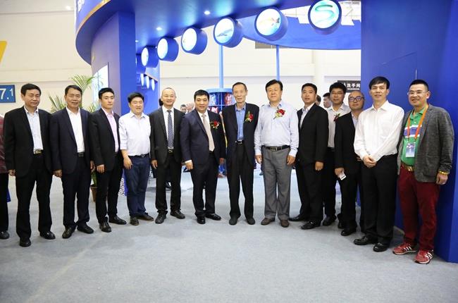 上图为陈庆堂董事长向于康震副部长,农业部原副部长、中国饲料工业协会顾问高鸿宾等领导介绍小兰电竞 ,助力你的电竞梦想,从入门到精通科技产品及相关水产品