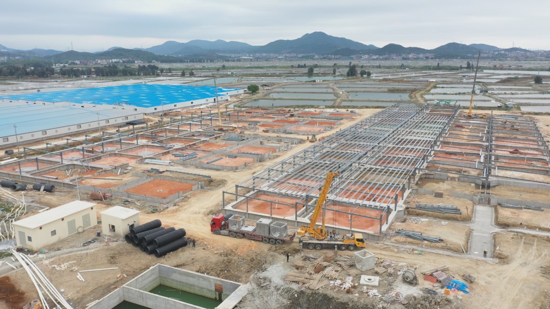 昨日,位于福清市的星马·福清鑫鱼绿色生态循环水养殖基地(白鸽山万亩产业基地)建设现场,“扎根三福之地,打造‘中国鳗谷’”的标语格外醒目。这里有成片的工厂化循环养殖车间,还有挖掘机、运料车往来穿梭,项目建设如火如荼。